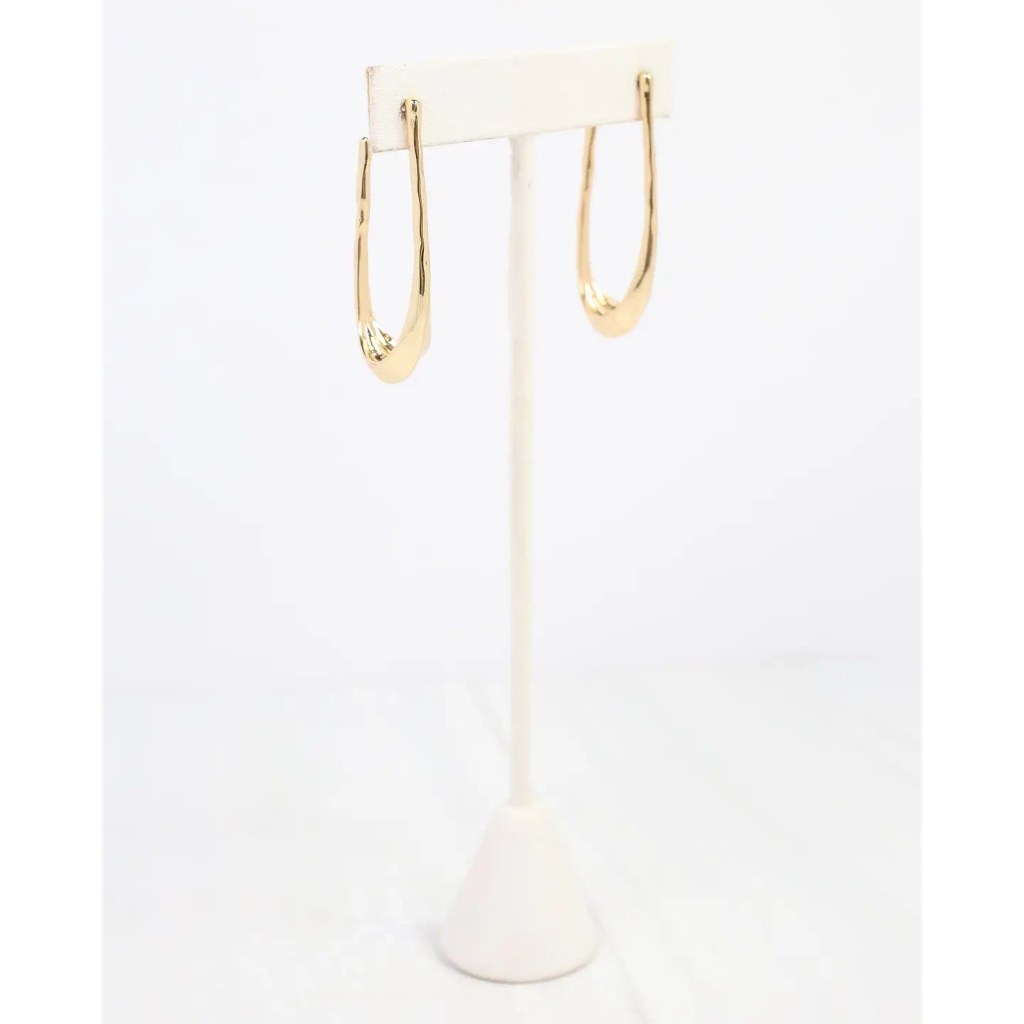 Elevate your look with the Fairfield Hammered Hoop Earrings in shiny gold. These oblong, delicate hoops are super lightweight, making them comfortable for all-day wear. Their hammered texture adds a stylish edge, perfect for adding elegance with a playful twist to any outfit.