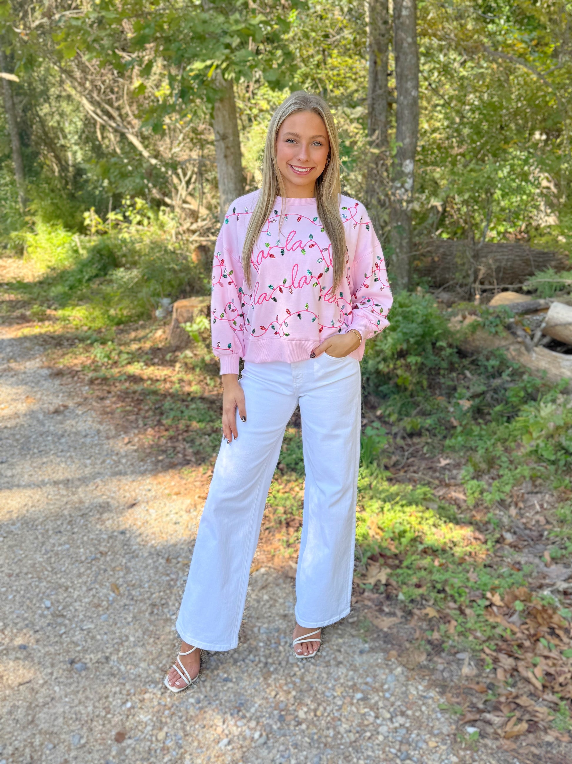 Stay cozy and cheerful this season with the Festive Millie Sweatshirt. Its soft pink fabric is adorned with sparkling light sequin patches, adding a fun and festive touch to your casual look. Perfect for holiday gatherings or relaxed days, this sweatshirt brings warmth and whimsy together in one playful package.