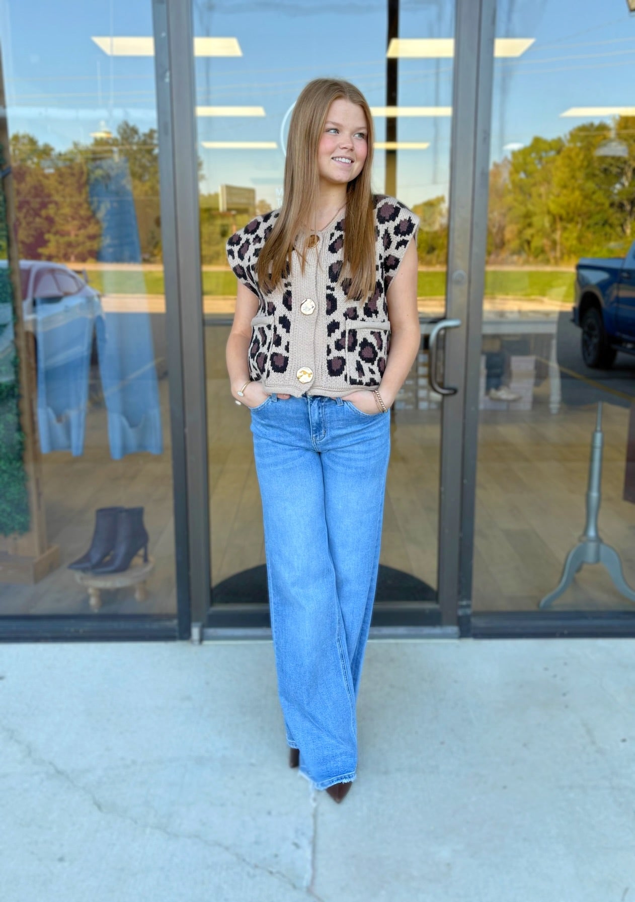 Embrace effortless style with the Fierce Feline Top, a sleeveless knit that’s as fun as it is functional. Featuring handy pockets, this playful piece keeps your essentials close while letting you stay cool and comfy all day long. Perfect for layering or wearing on its own, it adds a touch of feline-inspired flair to any look.