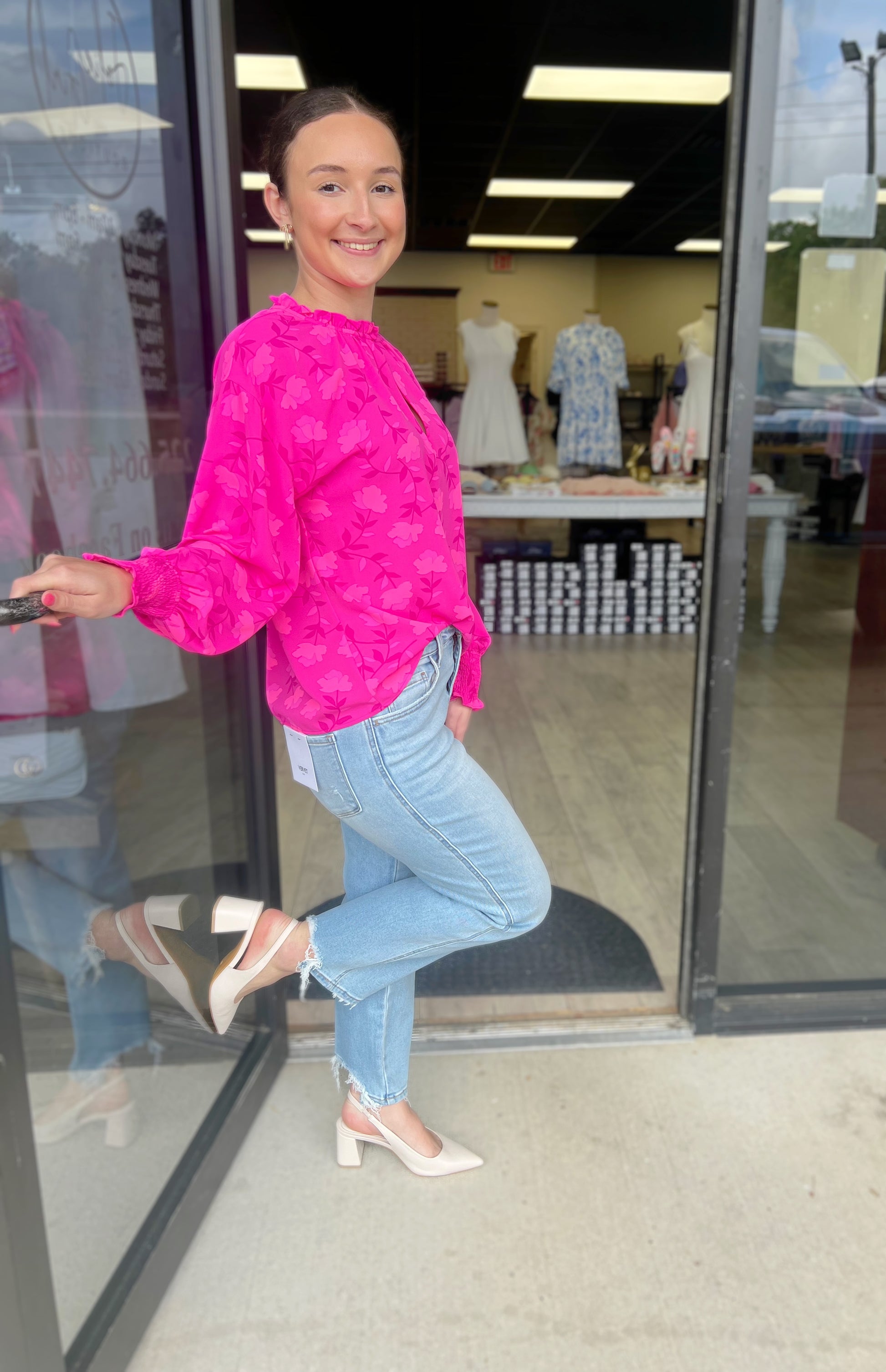 Gorgeous, glamourous and glowing! Those are the vibes we get from this chic top that features a split neckline with drawstring details. Smocking takes place around the arm cuffs and create long balloon sleeves.