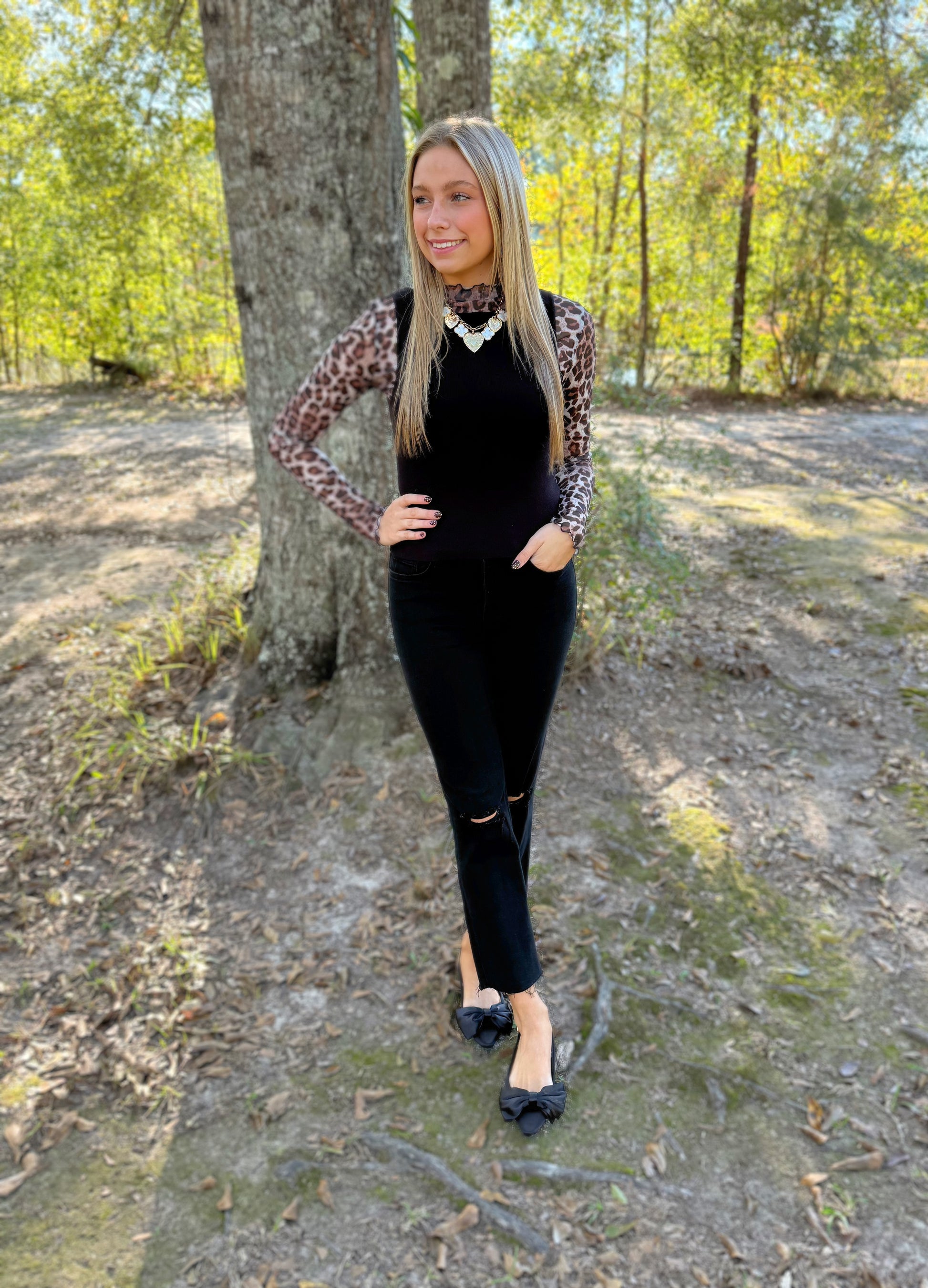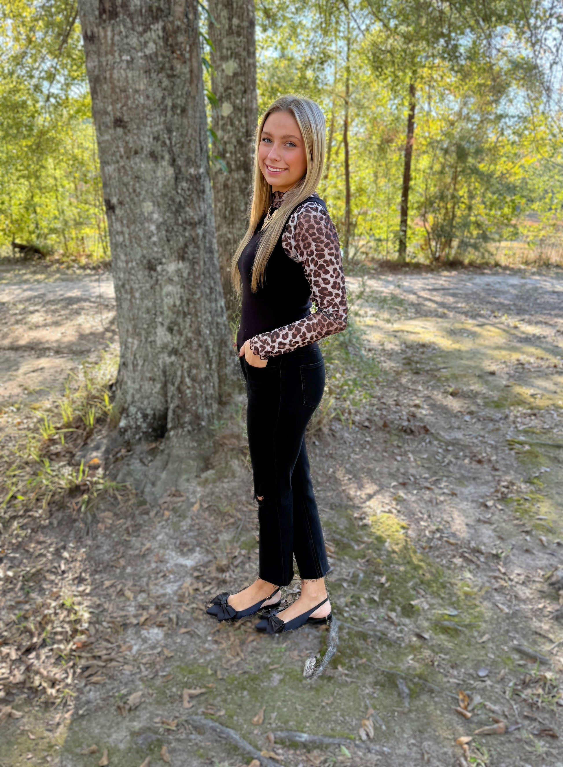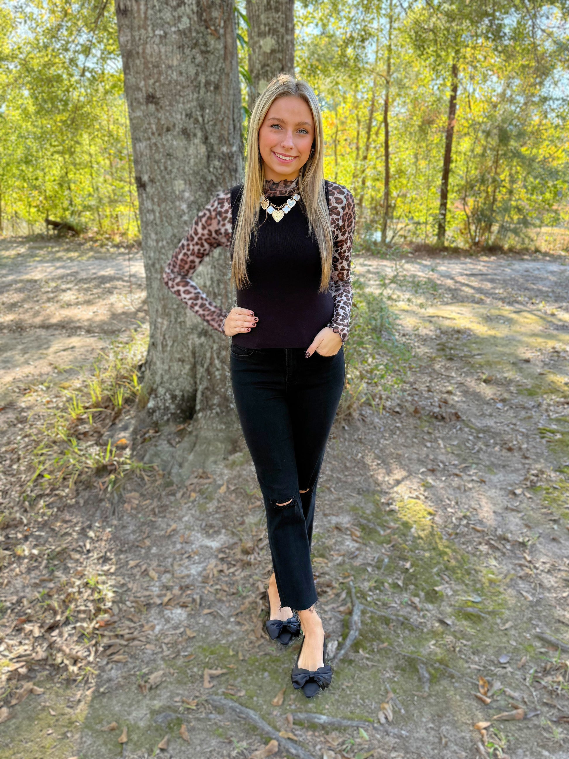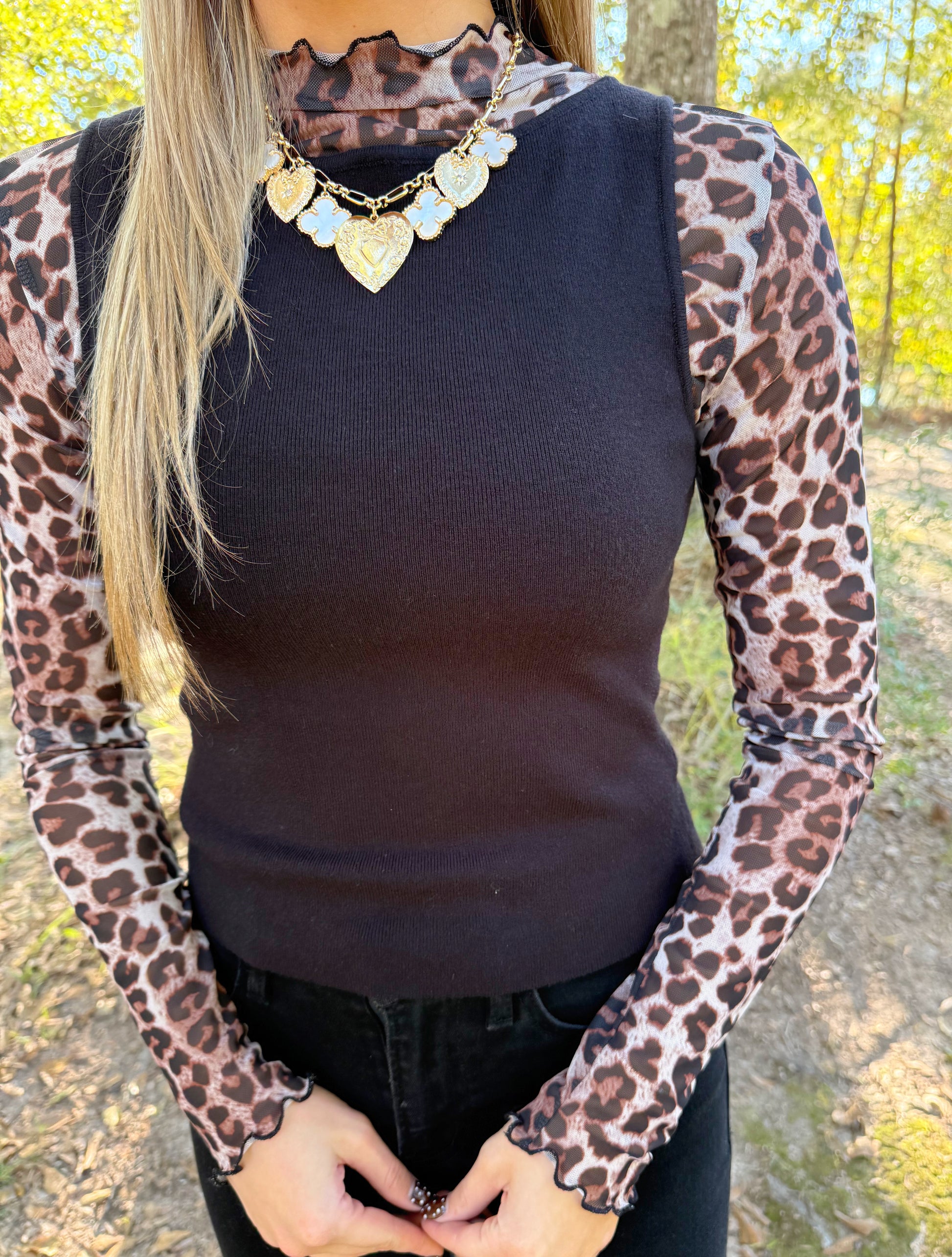 Made from a breathable, stretchy mesh fabric, this top offers a sleek, body-hugging fit that's perfect for layering or wearing on its own. The all-over leopard print adds a fierce and trendy touch, while the long sleeves and lightweight design make it ideal for transitioning between seasons. Pair it with high-waisted jeans or a sleek skirt for a head-turning, fashion-forward look.