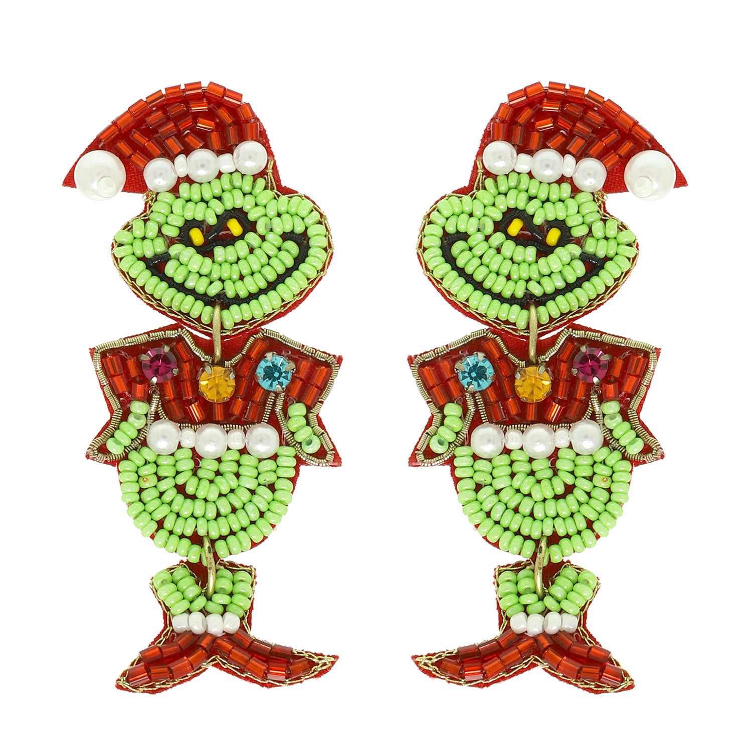 Embrace your inner Grinch with these mischievous beaded earrings! Featuring festive holiday charm with a cheeky twist, these playful accessories capture the spirit of everyone's favorite curmudgeon. Perfect for spreading seasonal sass and holiday humor, they're an instant conversation starter. Whether you're a devoted Grinch fan or just love adding a touch of whimsy to your winter wardrobe, these beaded beauties deliver personality with every wear. Get ready to steal hearts—and maybe a few smiles—this season!