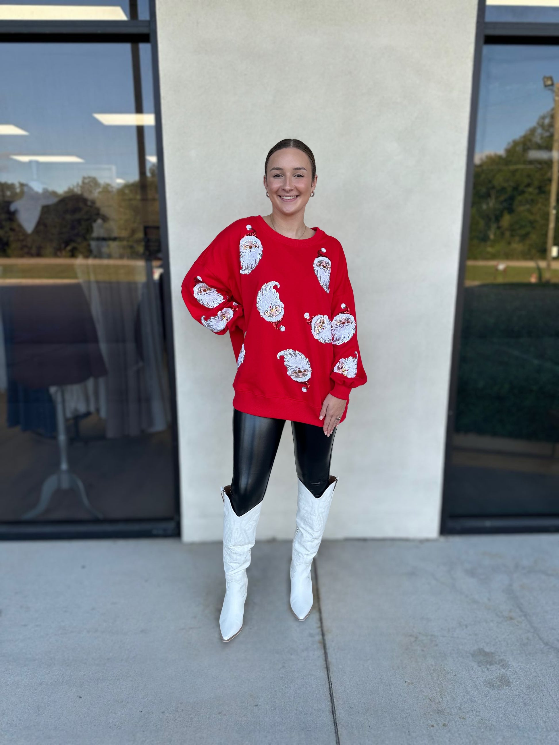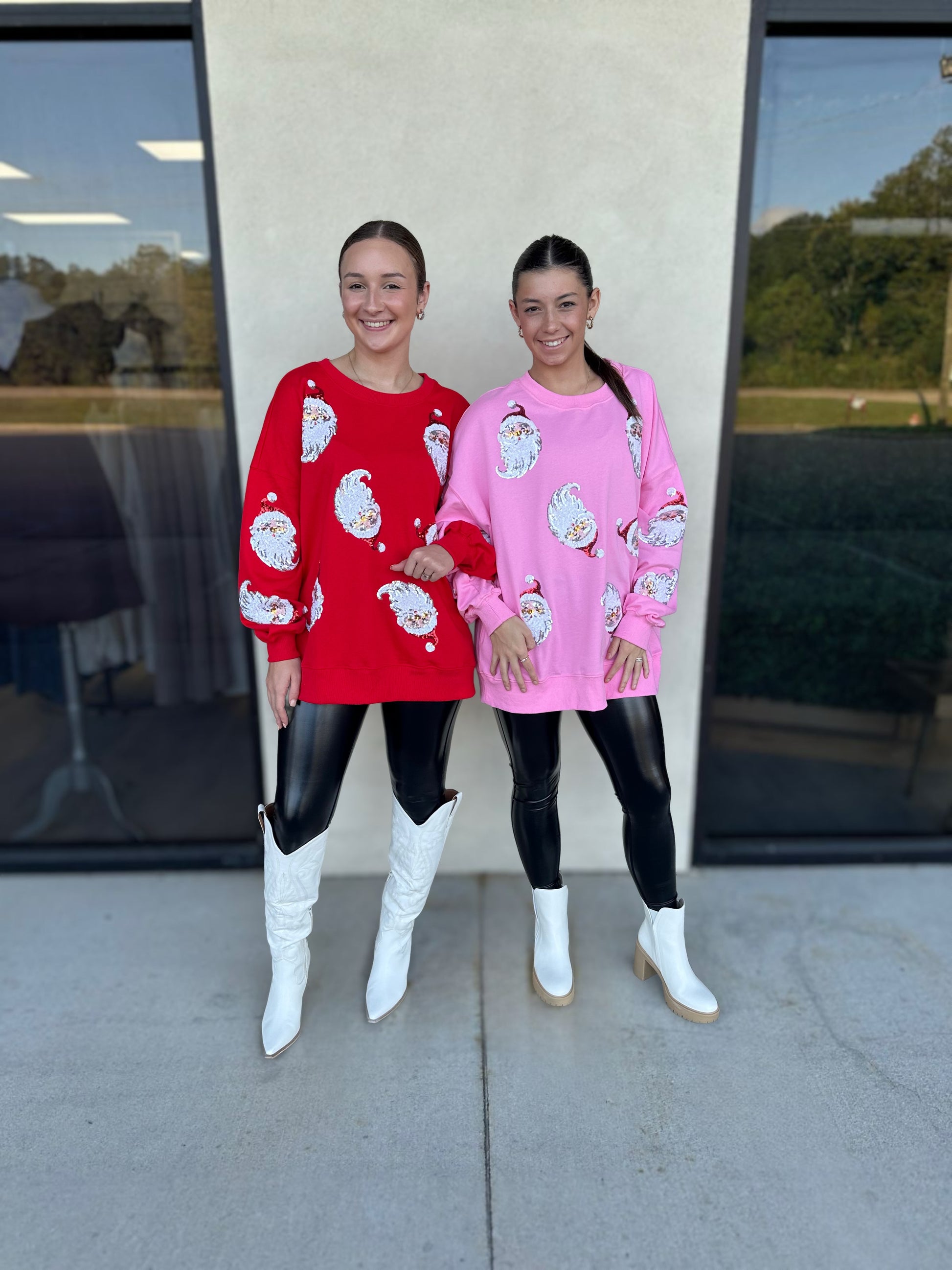 Add a playful touch to your holiday decor with this oversized sequin Santa in red. Perfect for Christmas, this quirky decoration is sure to bring a smile to everyone's face. (Santa, but make it fashion!)