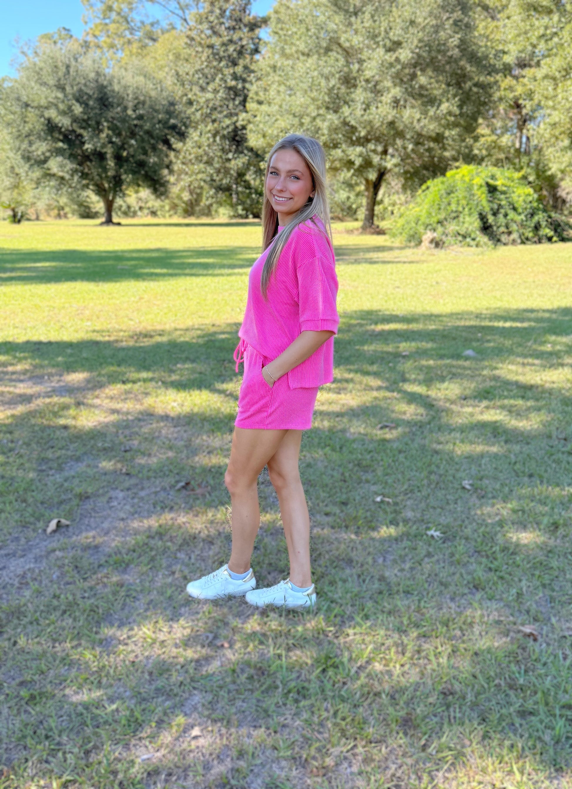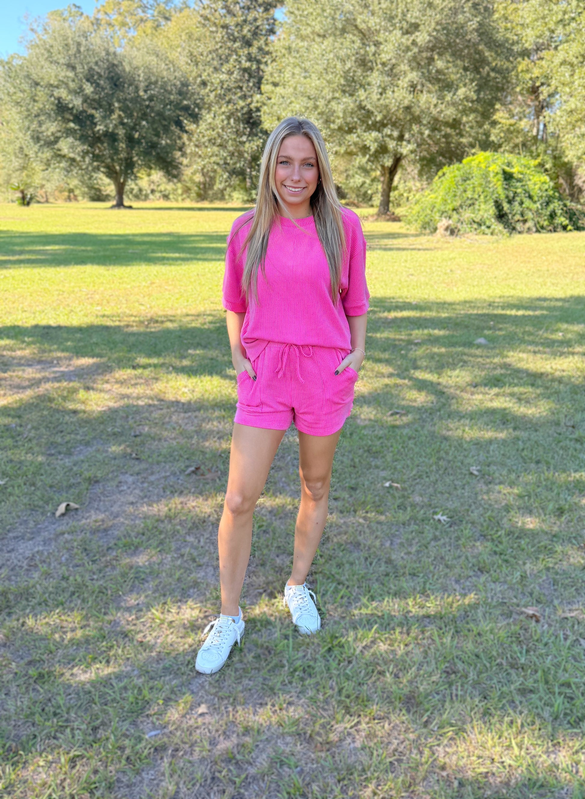 Stay comfortable and on-trend with the Ribbed Round Neck Top and Shorts Set - a versatile addition to your wardrobe that embraces both relaxation and style. Whether you're enjoying a cozy day indoors or stepping out for a casual adventure, this set ensures you do it with comfort and flair.